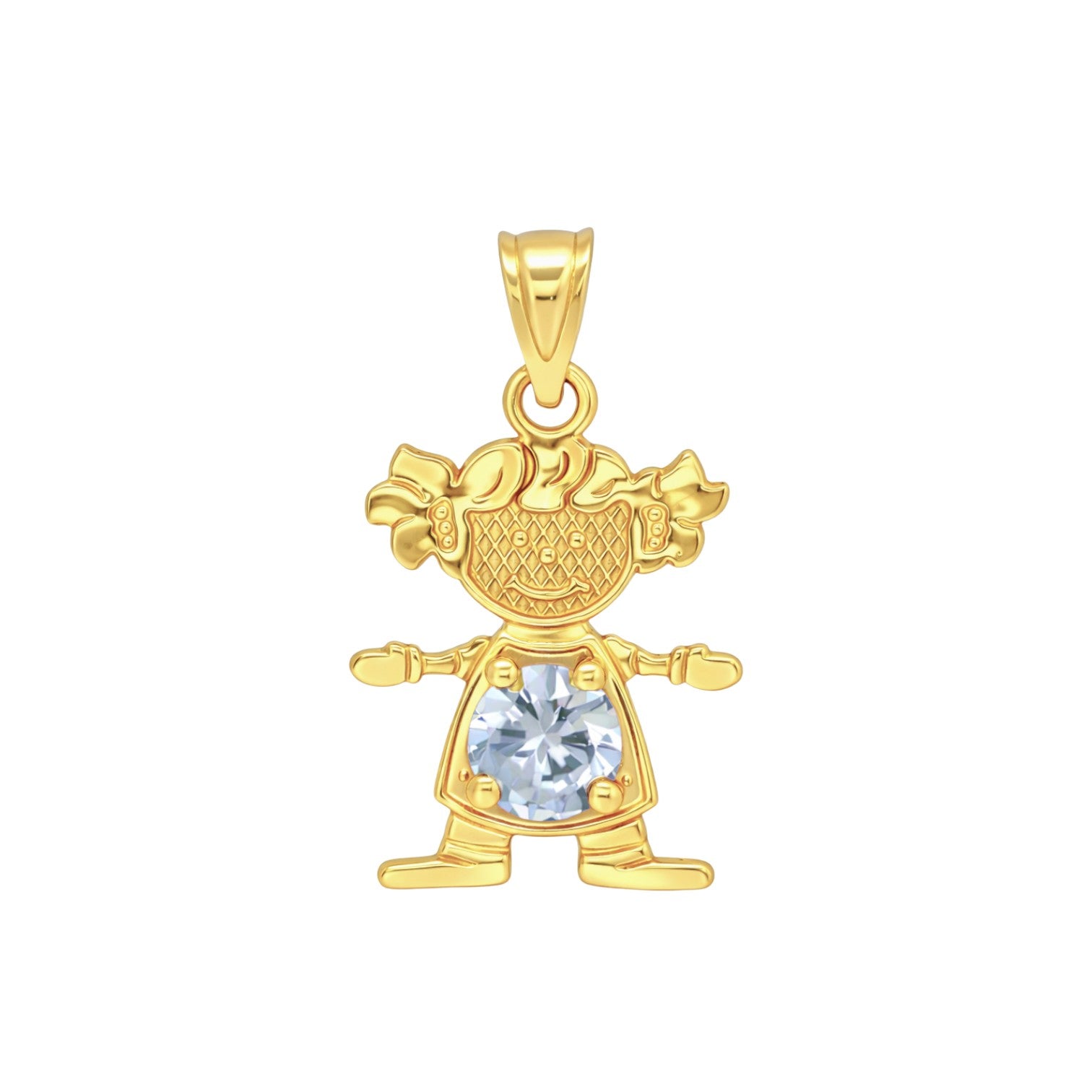 Celebrate someone special with these adorable 14K yellow gold birthstone boy and girl pendants. Each little charm measures about 17 mm tall and features a round cubic zirconia stone in the color of their birth month—Garnet (January), Amethyst (February), Aquamarine (March), Diamond-look (April), Emerald (May), Alexandrite (June), Ruby (July), Peridot (August), Sapphire (September), Tourmaline (October), Citrine (November), or Blue Zircon (December).