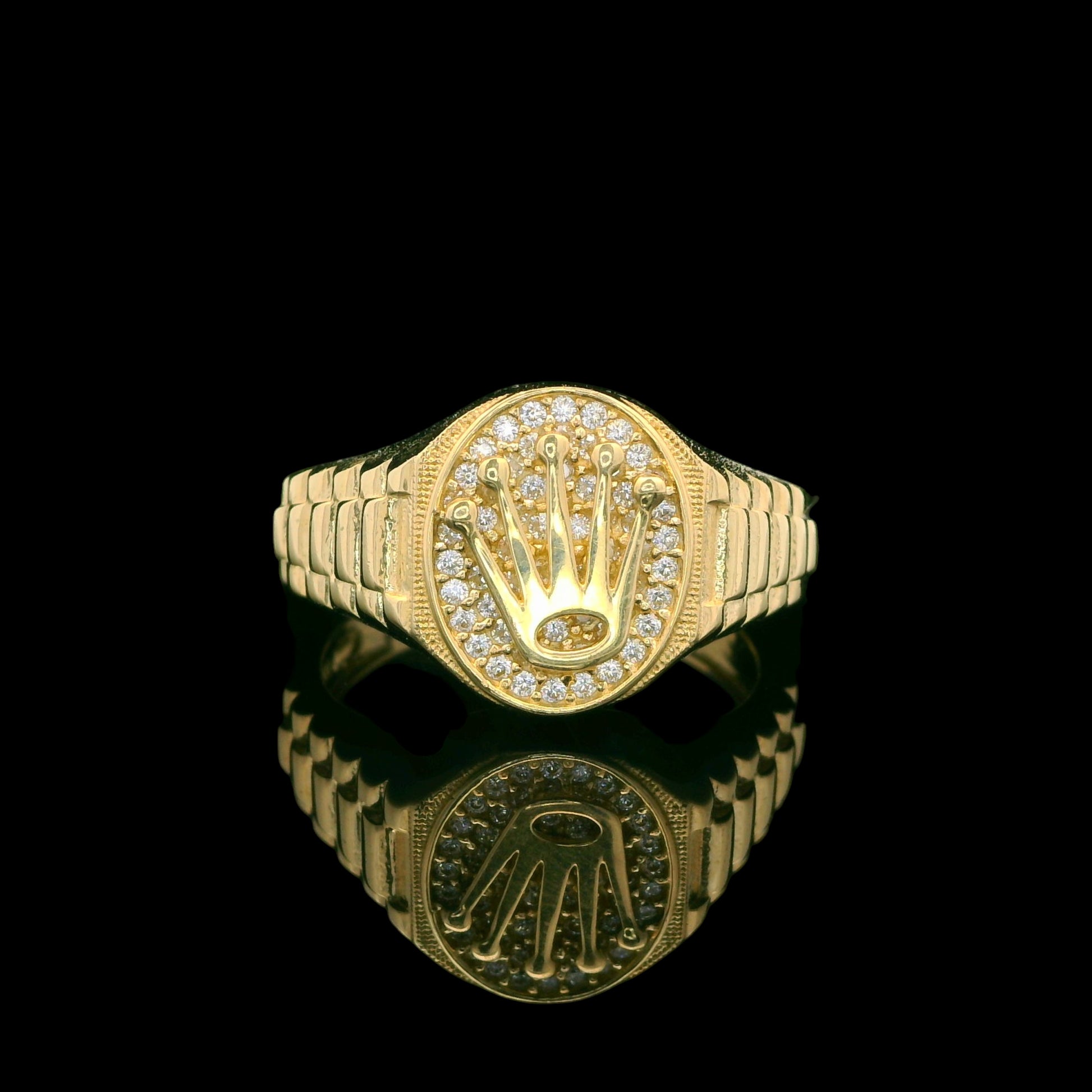 Make a statement with this 14K gold ring featuring a bold crown design framed by a sparkling CZ (cubic zirconia) halo. The 13mm face gives it standout presence, while the polished finish and ribbed shank details add a clean, premium look. A sharp piece for everyday wear or special occasions.