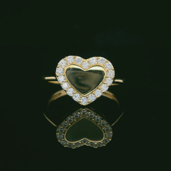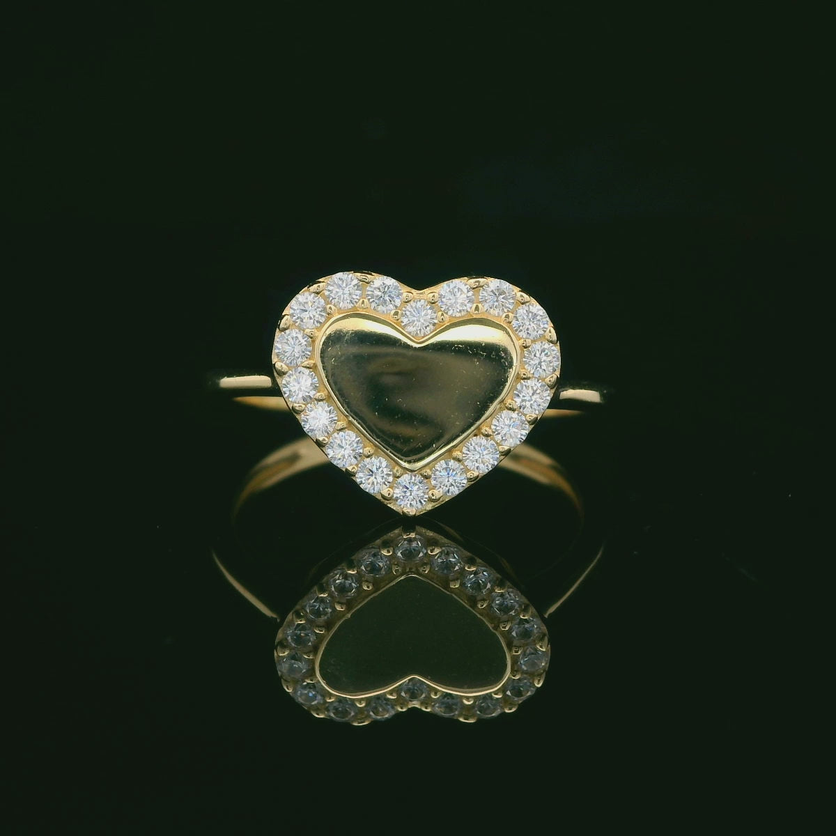 A clean, romantic statement ring featuring a smooth 10mm heart centerpiece framed by a sparkling CZ halo for extra shine. Finished in bright 14K gold with a sleek, comfortable band—perfect for everyday wear or a meaningful gift.