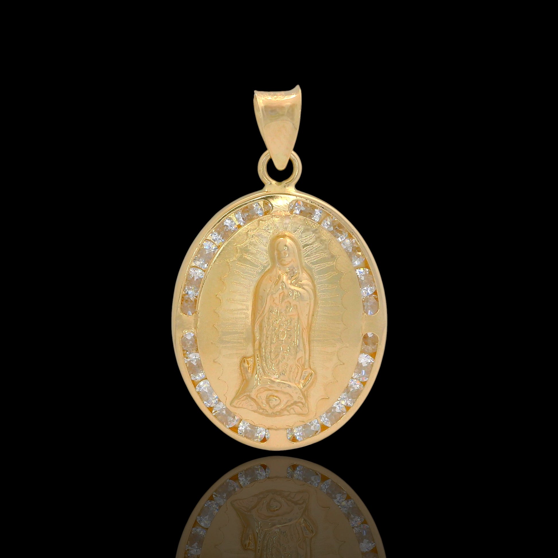 14K Gold Oval Our Lady of Guadalupe Pendant with CZ