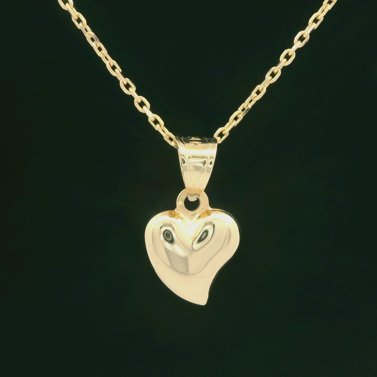 14K Gold Puff Heart Necklace – 16" + 2" Adjustable, 9mm & 13mm