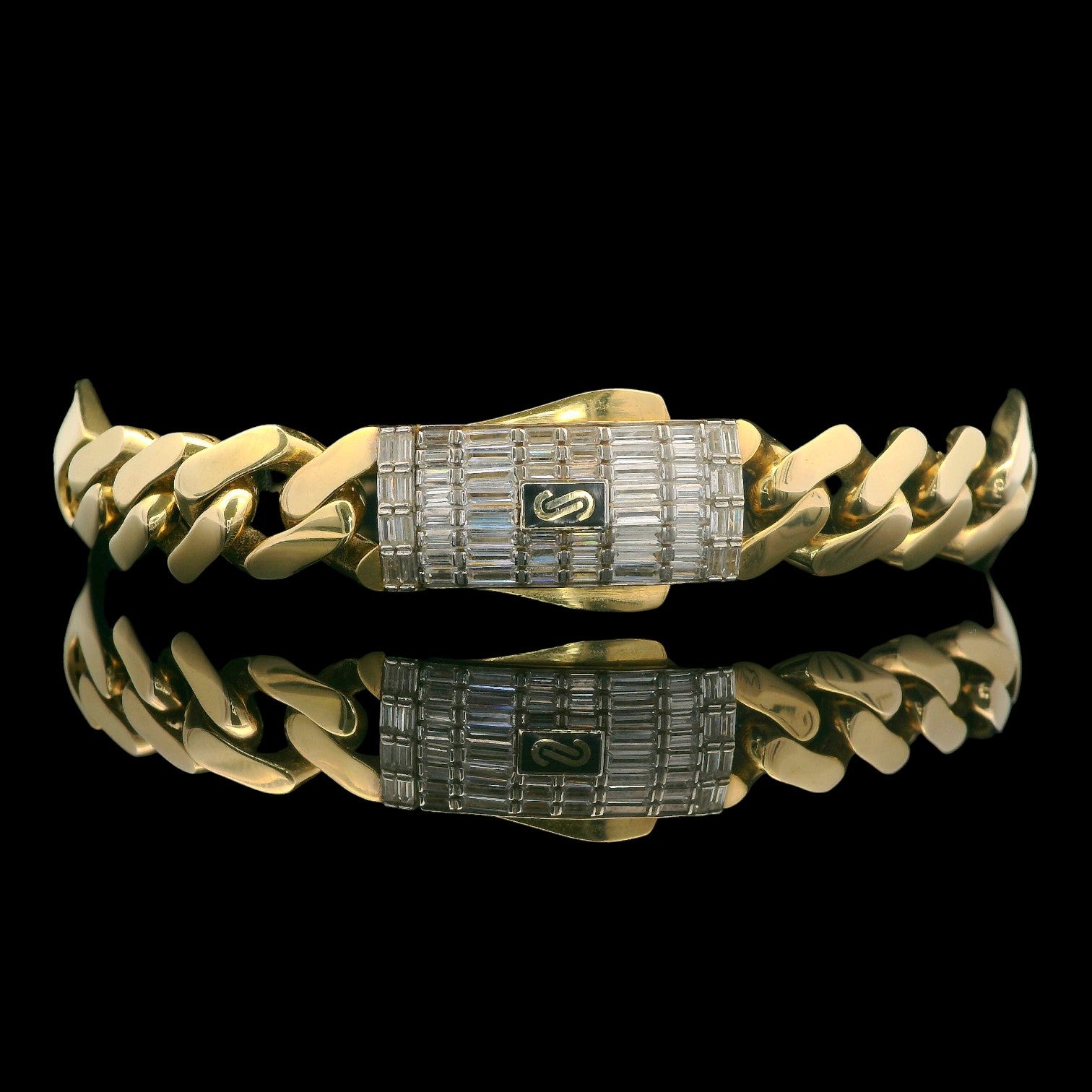 14K Yellow Gold 8" Genuine Monaco Lux Bracelet with Baguette CZ Lock 9.5mm