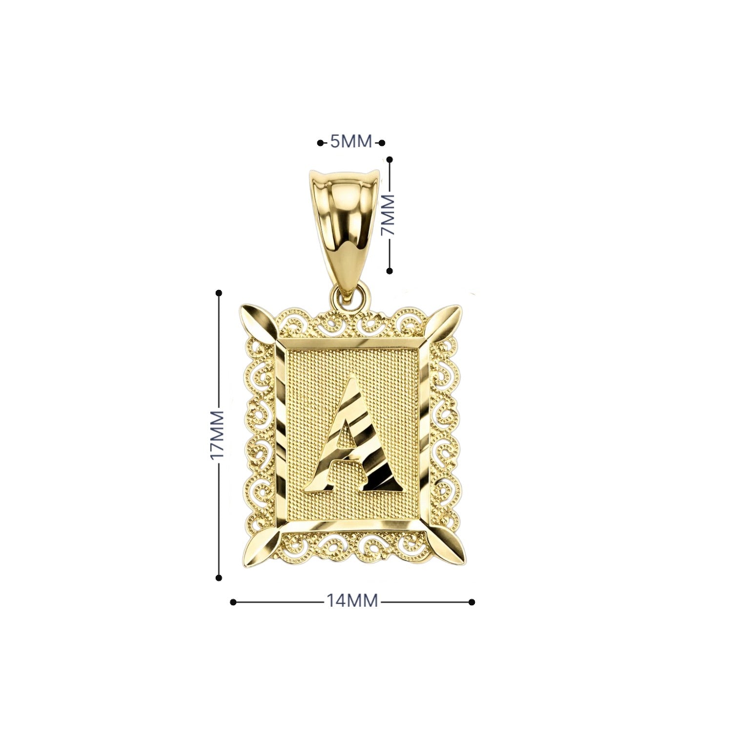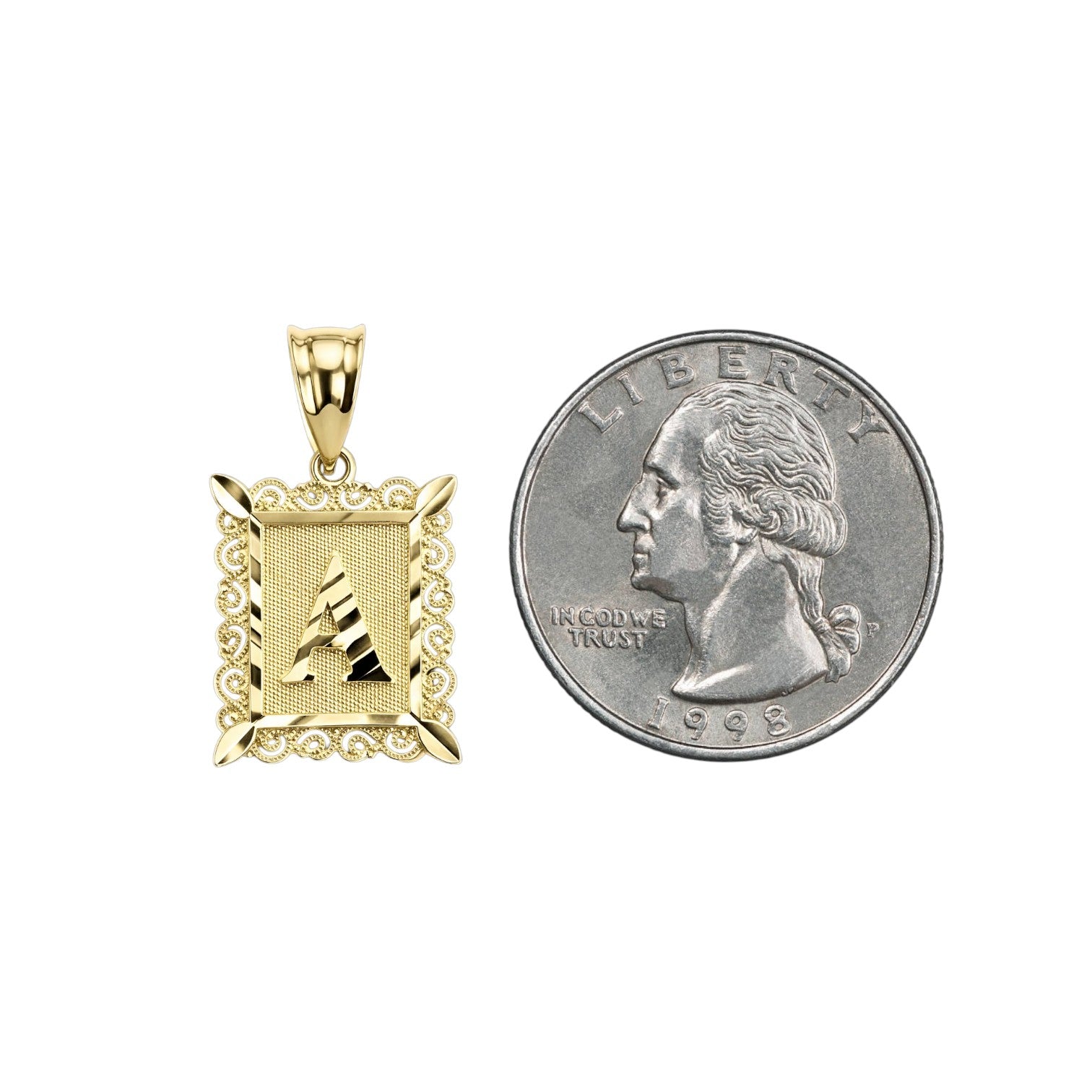Colgante inicial de filigrana de oro de 14 quilates