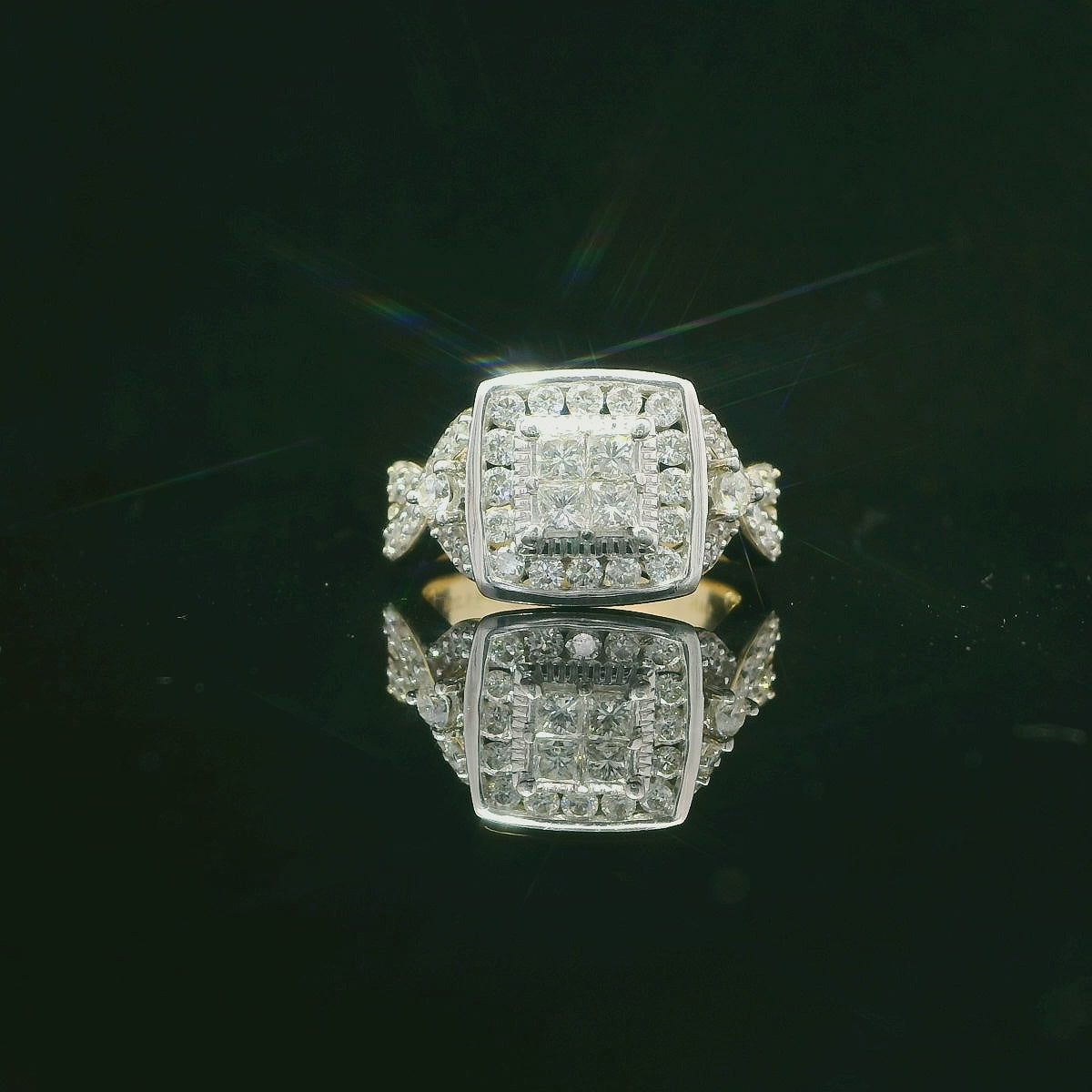 10K Gold 2.75 CTW Cushion Cluster Natural Diamond Ring