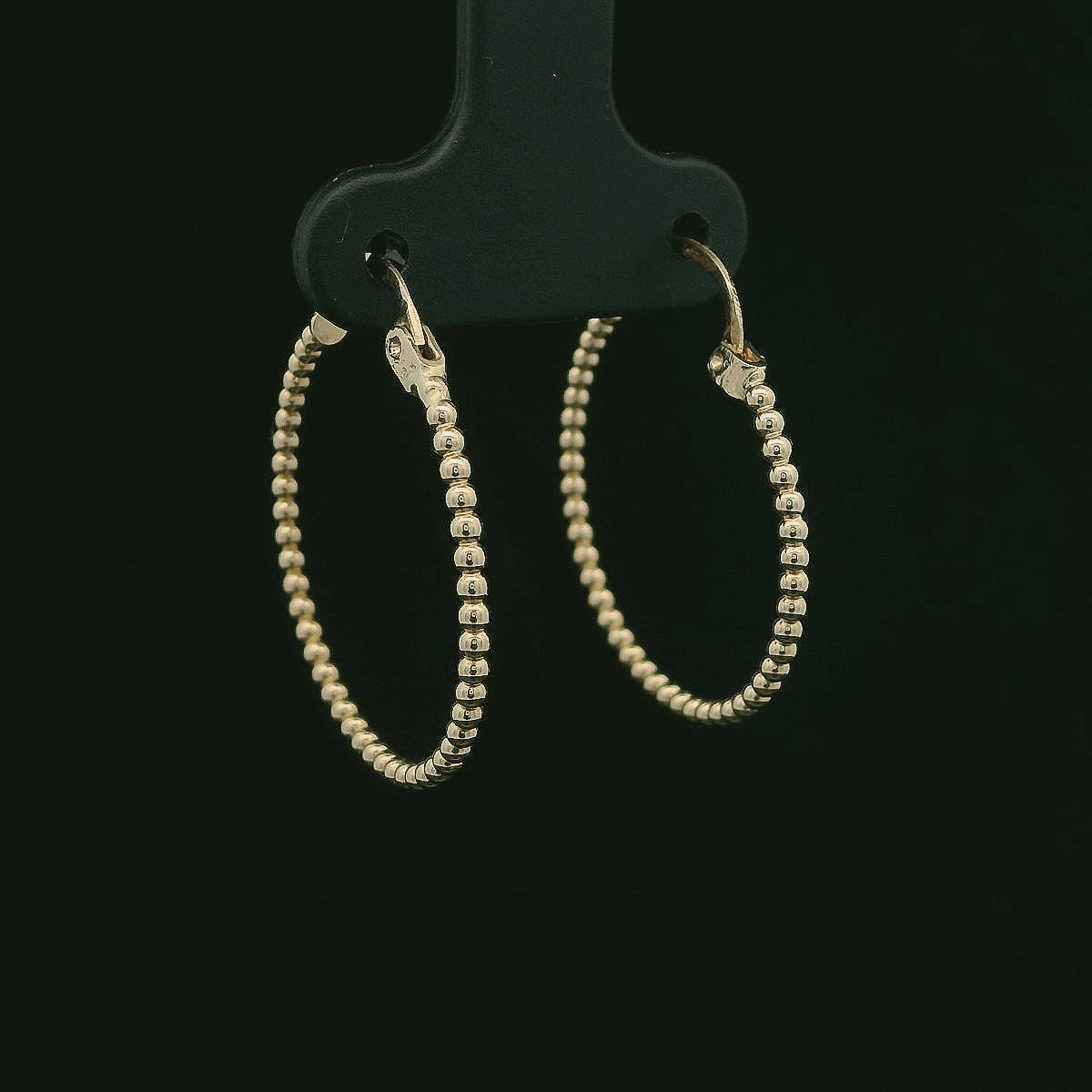 14K Yellow Gold 25mm Beaded Hoop Earrings