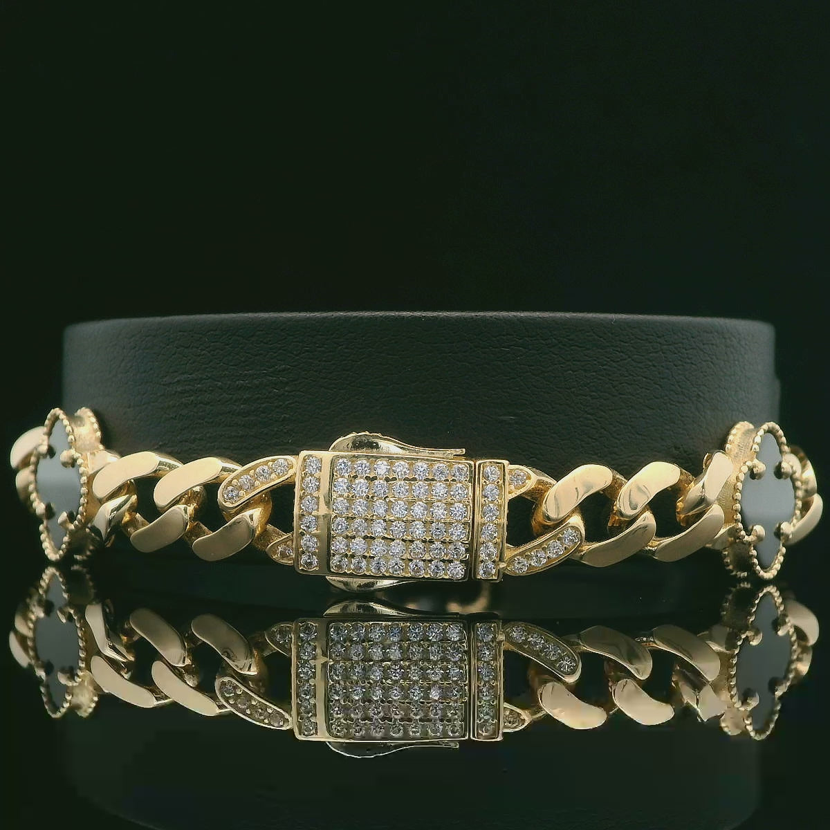 14K Cuban Link Bracelet with Black Flowers 7.5 In.
