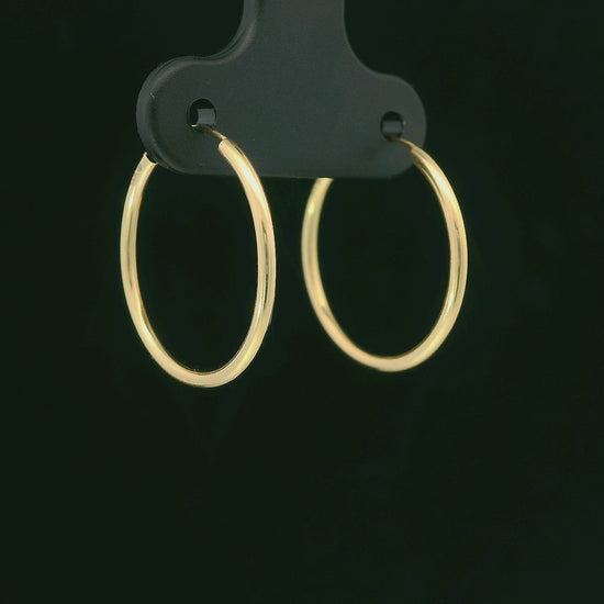 These 14K yellow gold hoop earrings are crafted in hollow 1mm tubing, giving you the look of classic gold hoops with a light, comfortable feel. Each hoop measures 18mm in diameter with a smooth, polished finish that catches the light just right. Easy to wear and secure with a simple wire closure, they’re a timeless everyday pair you can style alone or with other earrings.