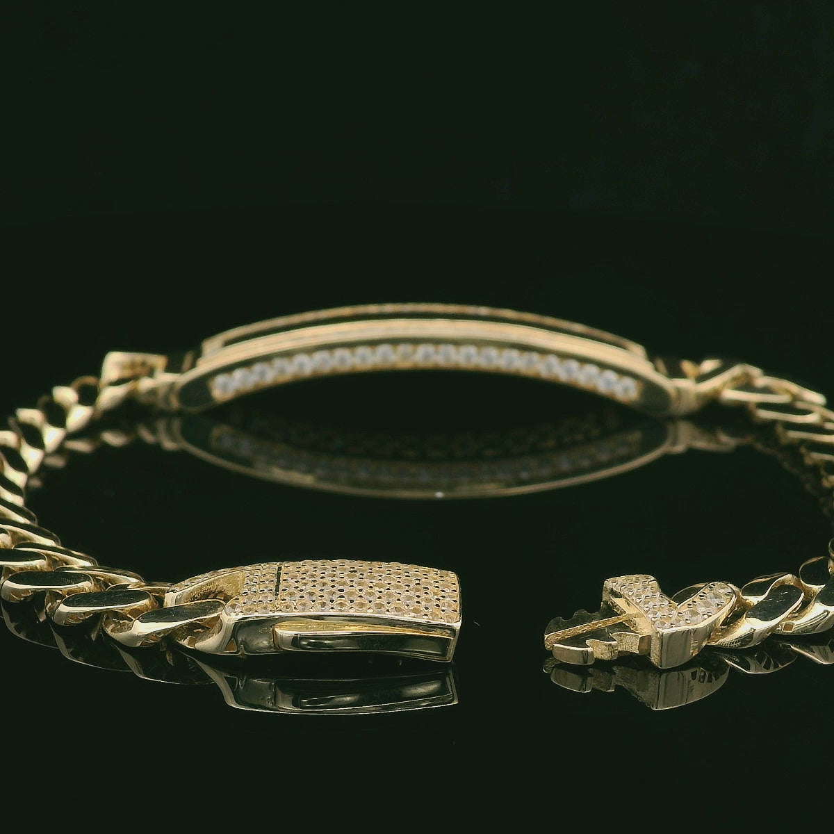 14K Gold Lightweight Cuban ID Bracelet with Baguette & Round CZ