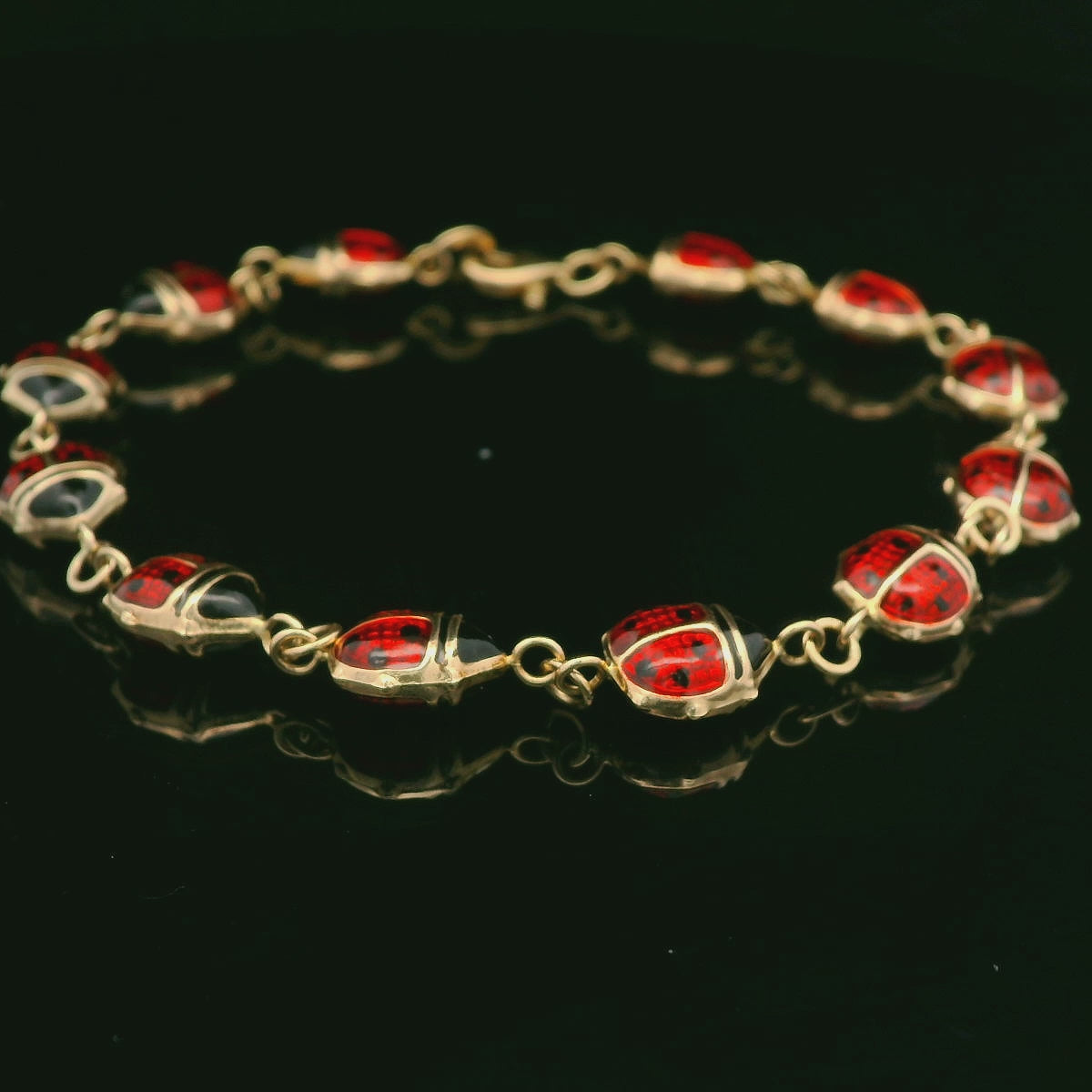 14K Italian Enamel Puff Ladybug Bracelet
