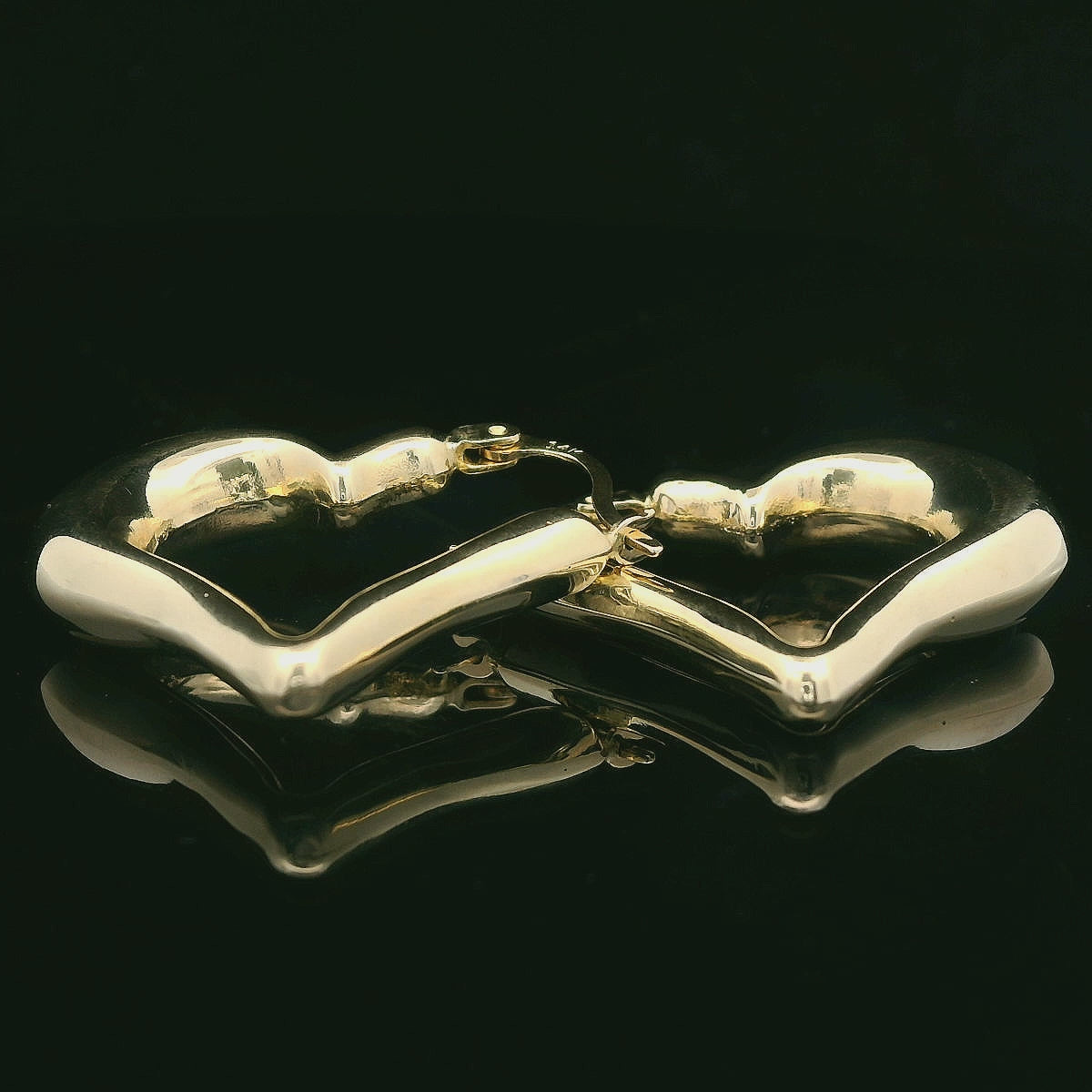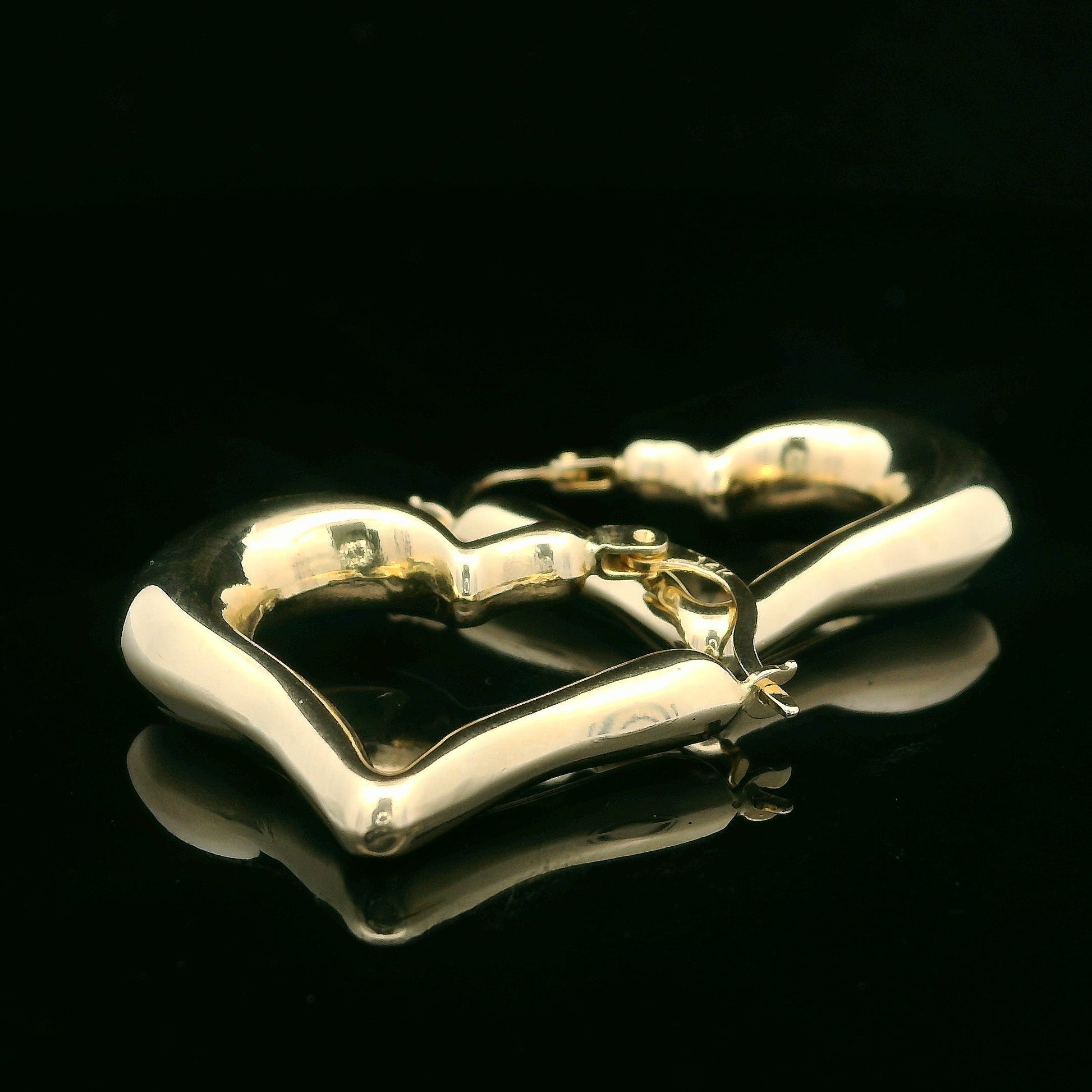 14K Solid Gold Open-Heart Hoop Earring – 29×25 mm