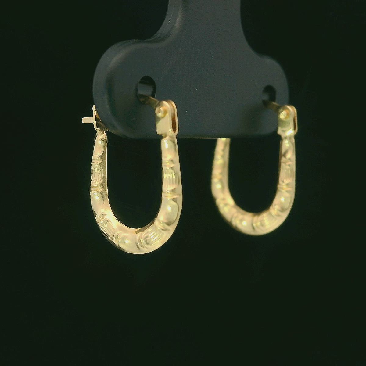 14K Yellow Gold Textured U-Hoop Earrings 13mm
