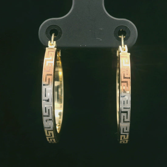 14K Gold Three Tone Greek Key Hoop Earrings – 20mm & 25mm