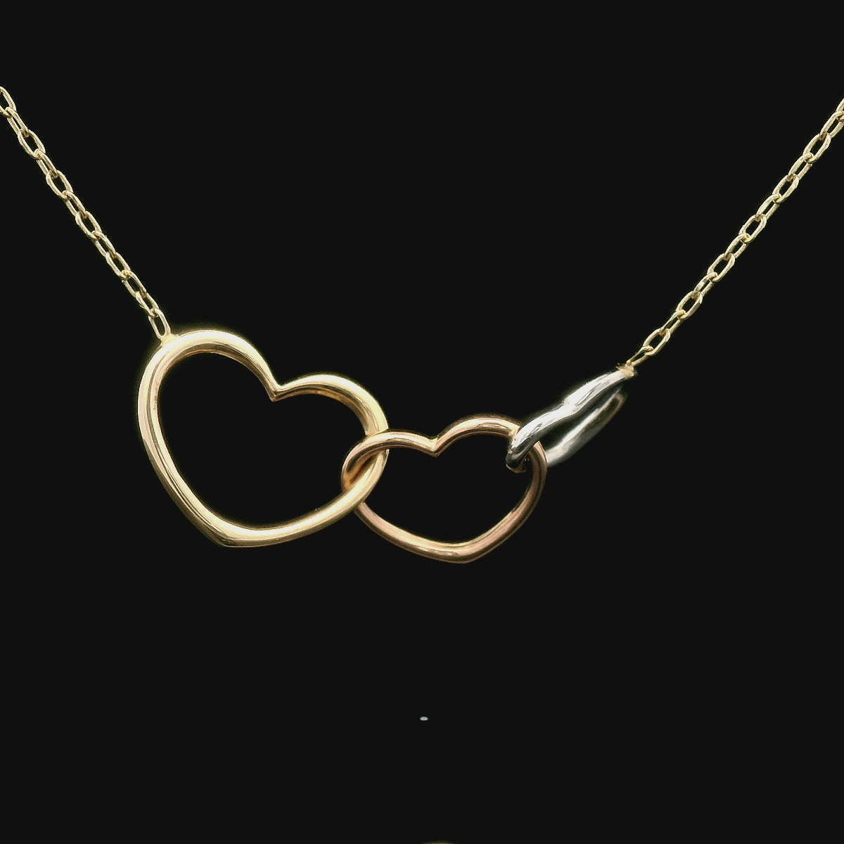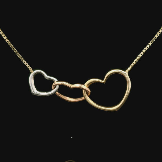 14K Tri-Color Linked Hearts Necklace – 19" (Cable or Box Chain)