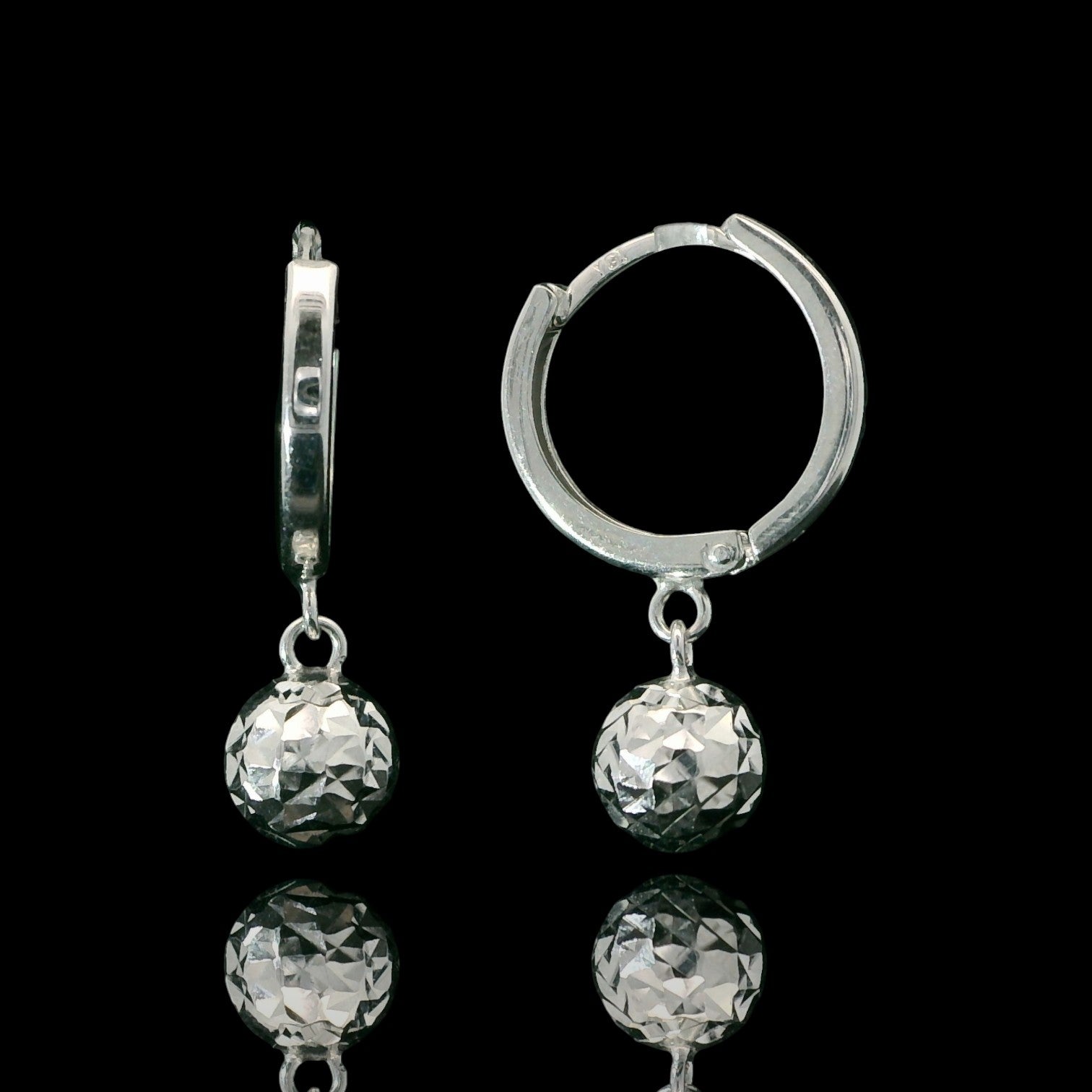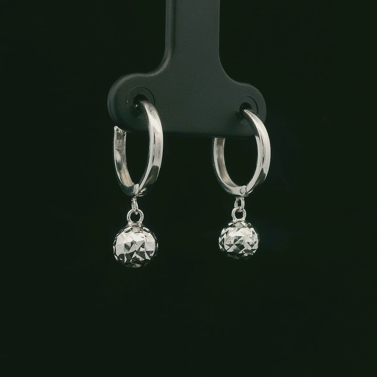 14K White Gold Huggie Hoops with Diamond-Cut Ball Charm