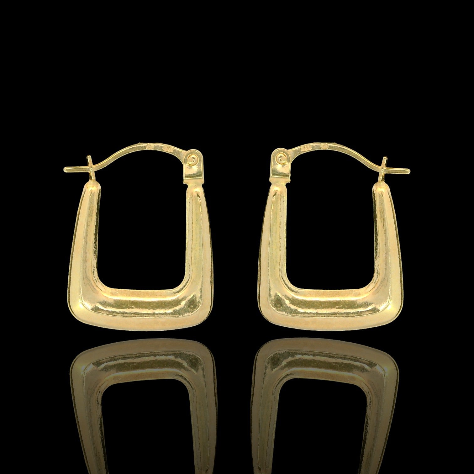 Clean, modern, and easy to wear—these 14K yellow gold hoop earrings feature a sleek rounded-square shape with a high-polish finish that catches the light from every angle. The 15mm size gives you a bold geometric look without feeling overdone, and the hinged latch-back closure keeps them secure and comfortable for everyday wear. Perfect for stacking with studs or wearing solo for a simple statement.
