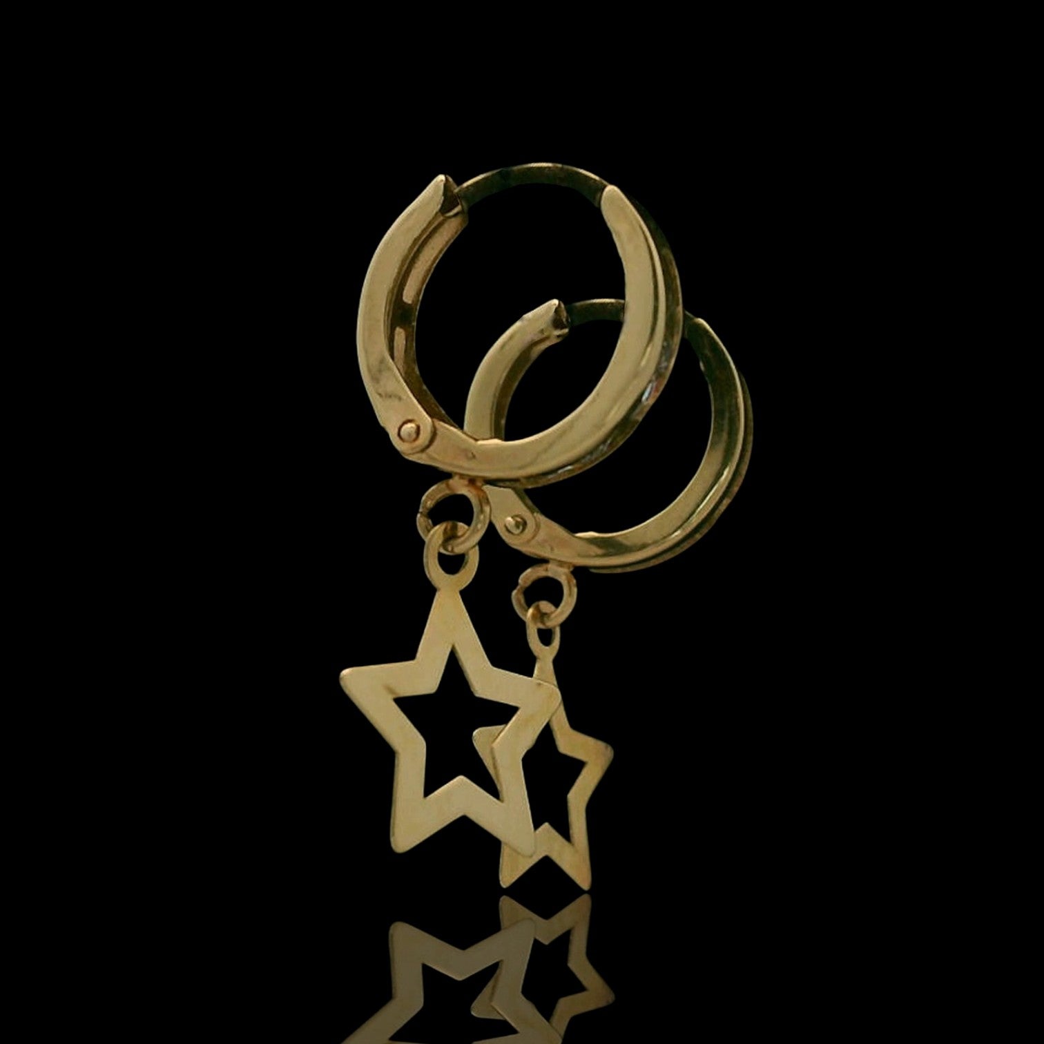 14K Yellow Gold Star Huggie Earrings – 12mm