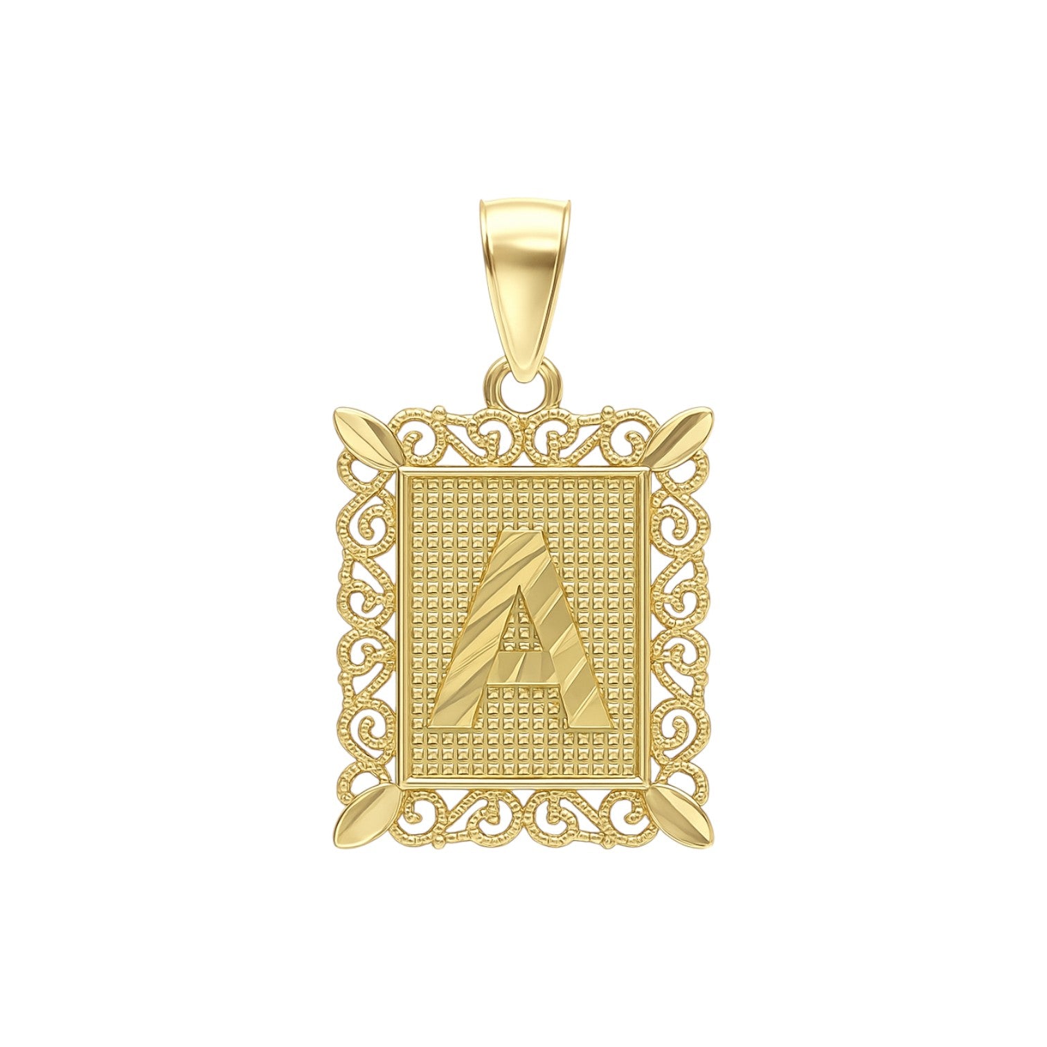 14K Gold Filigree Initial Pendant