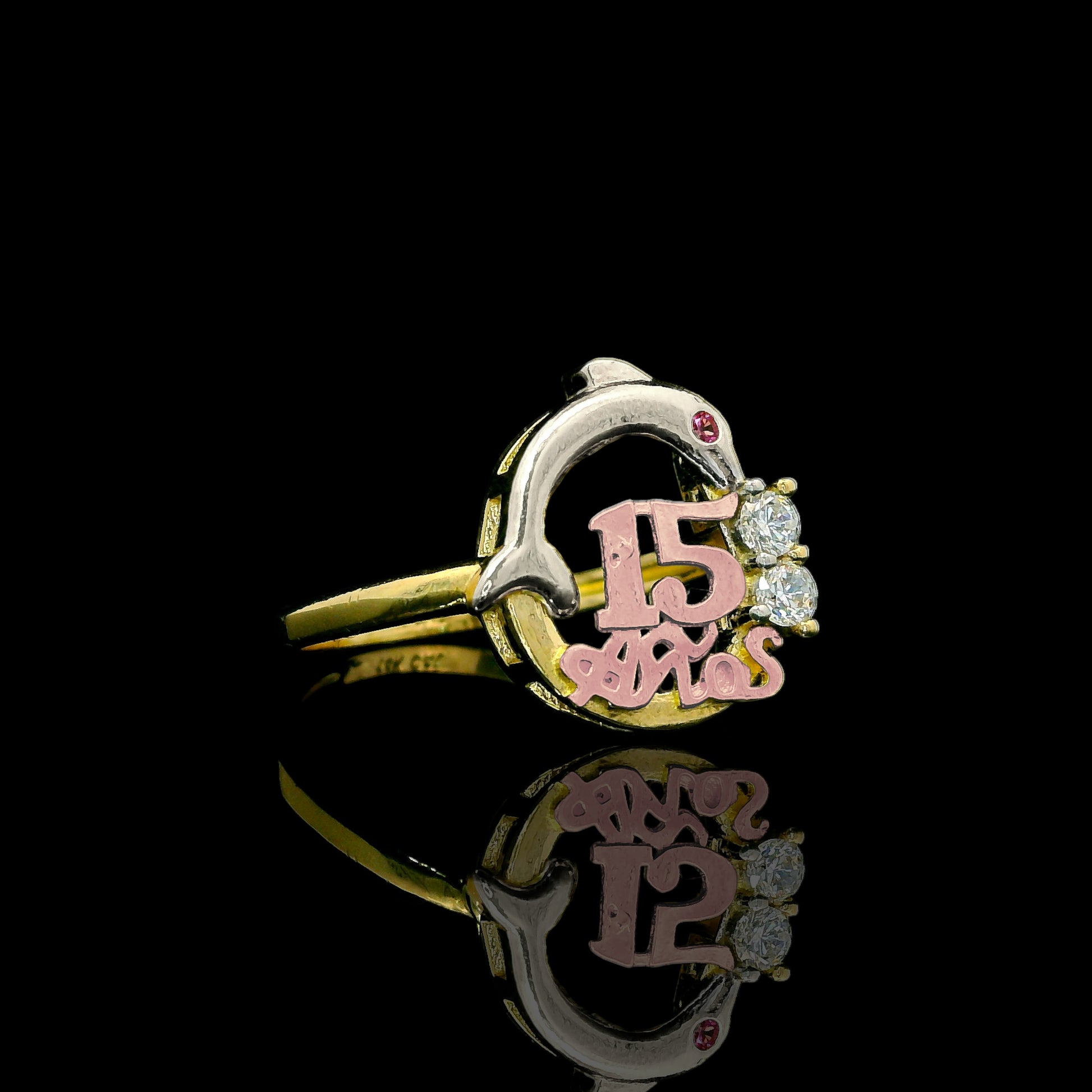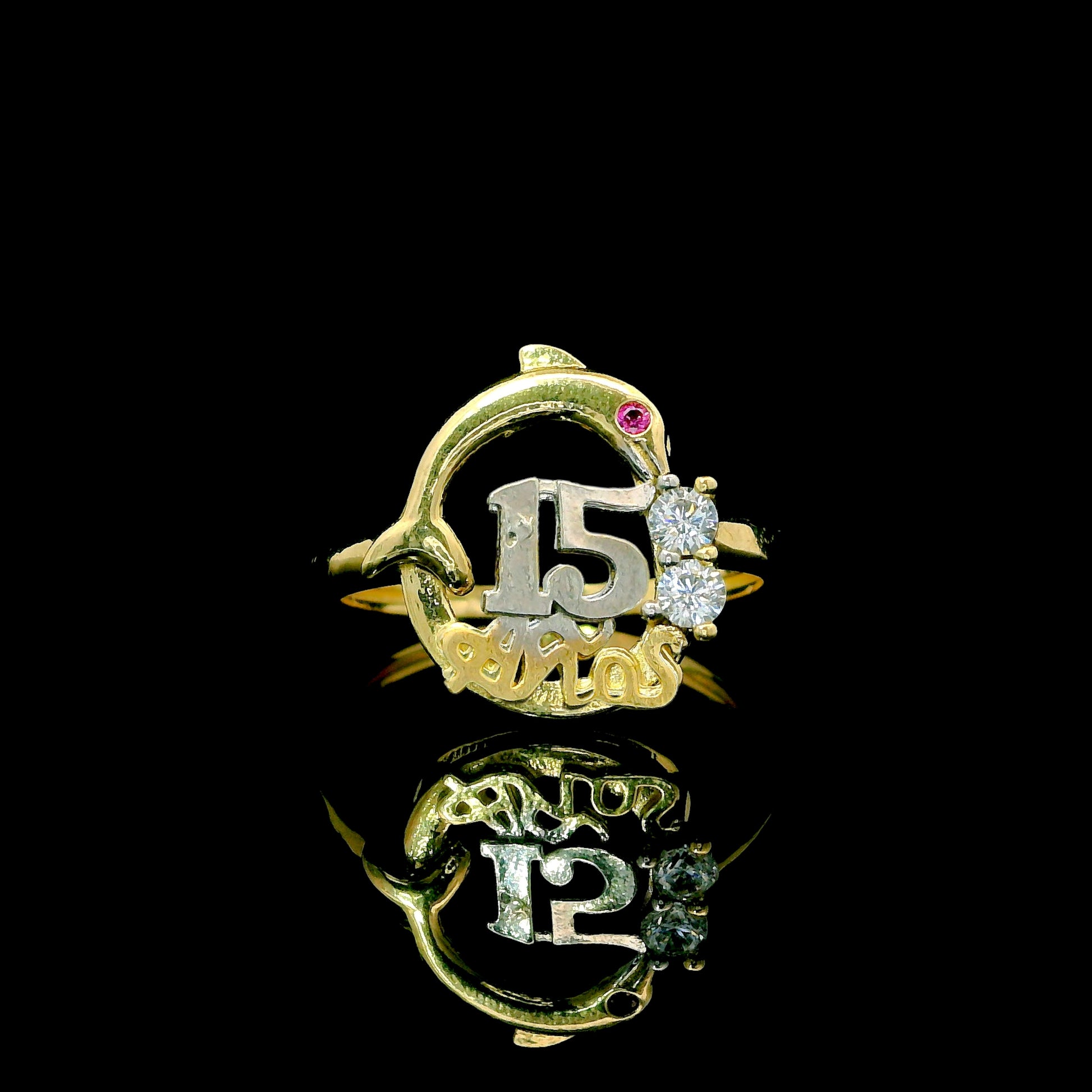 Celebrate her 15 Años in the cutest way with this 14K gold dolphin ring. The front measures about 13mm and features a two-tone “15 Años” design with sparkly CZ accents for that extra shine. It’s a meaningful quinceañera piece, perfect as a gift and easy to wear every day—sweet, unique, and made to stand out.