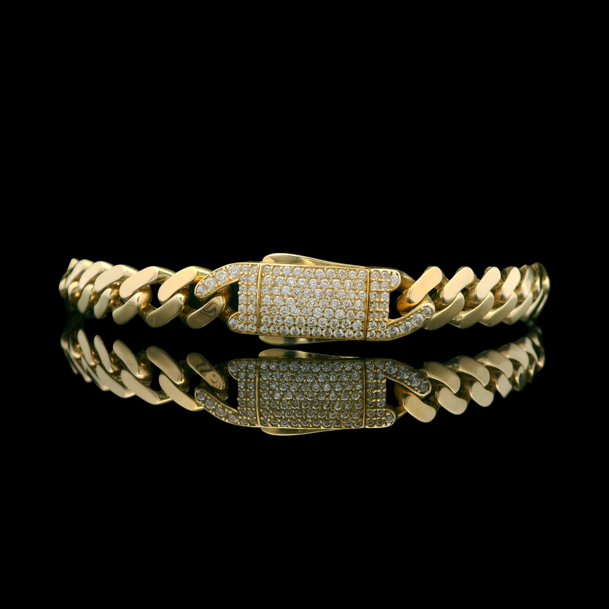 This 14K gold hollow Monaco ID bracelet is lightweight, comfortable, and perfect for everyday wear. It features a smooth engravable center plate with CZ stones along the border for a clean, subtle shine, plus a secure box clasp for a confident fit.