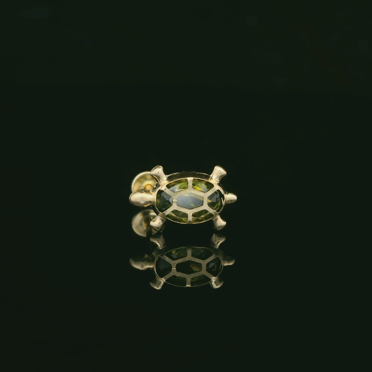 14K Gold Turtle Stud Earrings with Inlaid Oval CZ - 9mm